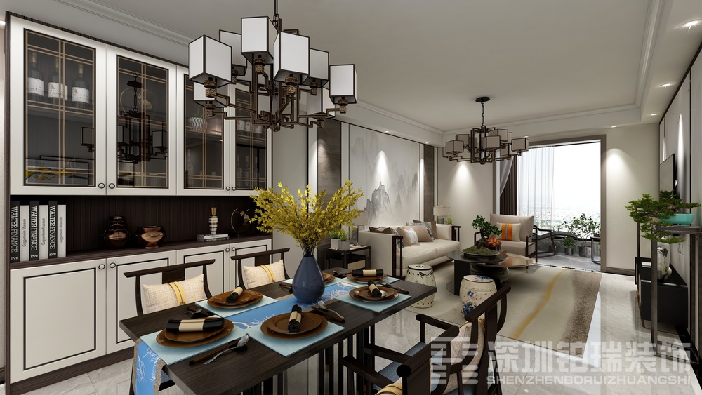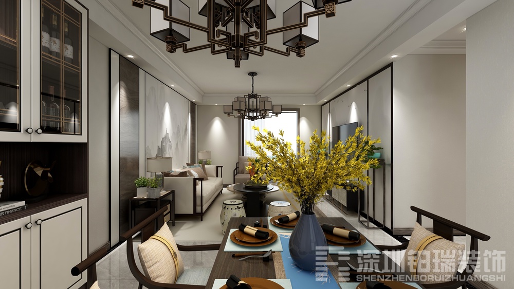 设计说明:新中式风格设计主要包括两方面的基本内容,一是中国传统风格文化意义在当前时代背景下的演绎;二是对中国当代文化充分理解基础上的当代设计。新中式风格不是纯粹的元素堆砌,而是通过对传统文化的认识,将现代元素和传统元素结合在一起,以现代人的审美需求来打造富有传统韵味的事物,让传统艺术在当今社会得到合适的体现。