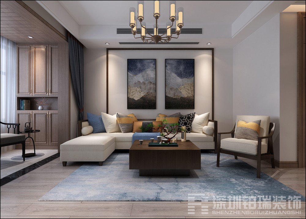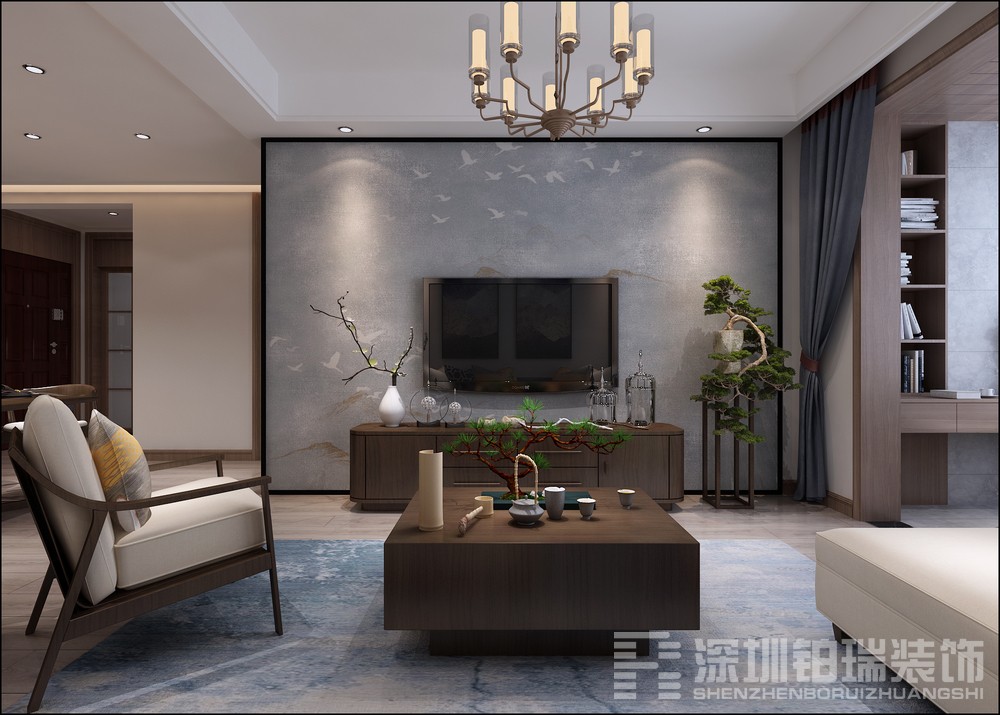 设计说明:简洁的空间中,没有繁杂和冗余的造型与结构,直线感的空间给予中式艺术更多表达的余地,创新出与众不同的清雅,让人感受到素色安谧。在整个空间及软装设计上遵循中式文化的精髓,从而突出清新淡雅、内敛含蓄,亦张亦弛中让你品鉴东方美学底蕴。