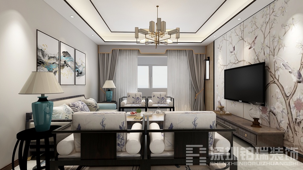 保利香槟国际121平新中式风格装修效果图