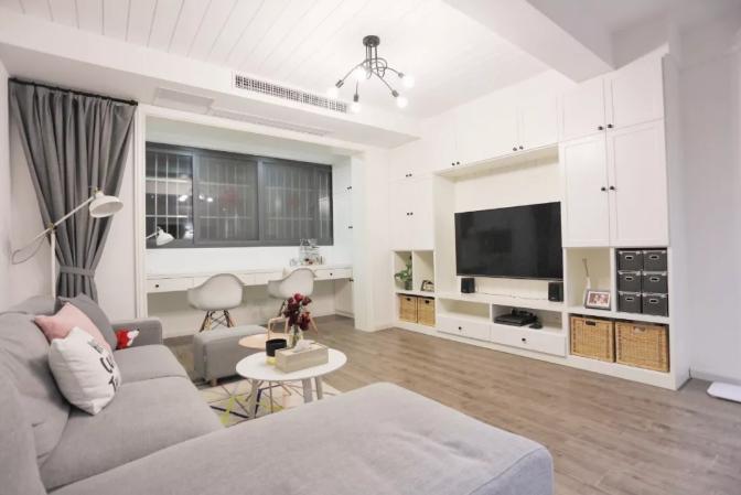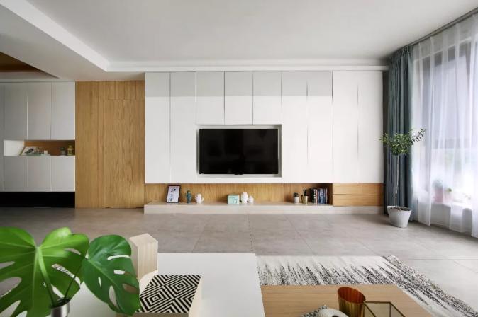 定制电视墙,就是在原有空间结构的基础上进行设计,做成开放、闭合等不同样式的收纳柜,保持简洁清新的视觉效果的同时,还可以为家庭提供丰富实用的收纳空间,是现在非常流行的一种背景墙设计方式。